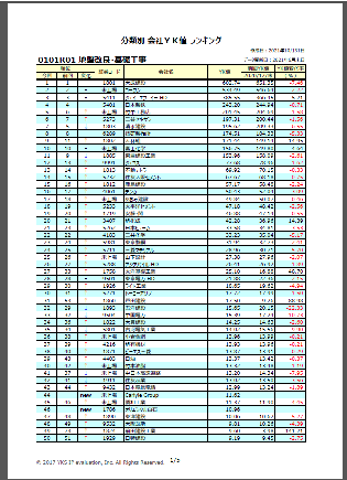 YKS技術業種分類(約300分類)ごとに、企業を特許競争力「YK値」でランキング。YK値の上昇率・下落率による企業ランキングも合わせて収録。