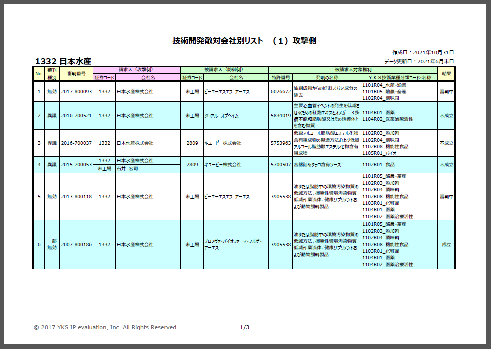 特許競争力「YK値」上位企業(約300社)について、敵対関係(無効審判、異議申立)にある特許をリスト化。